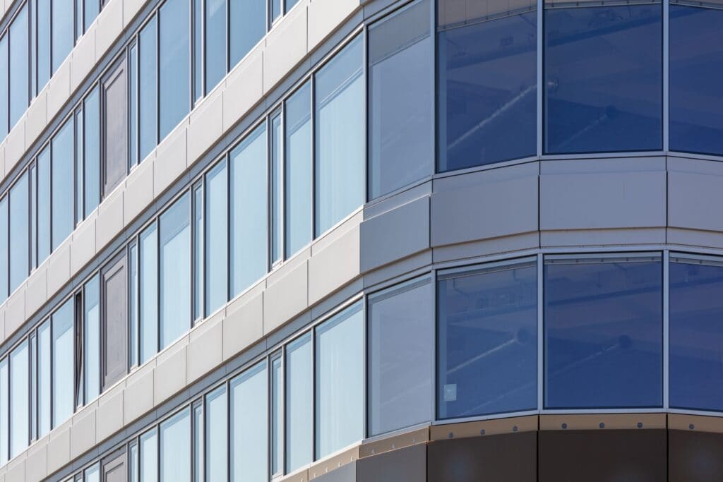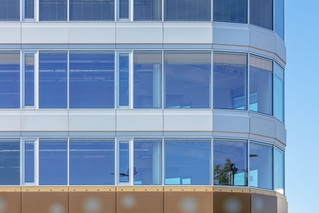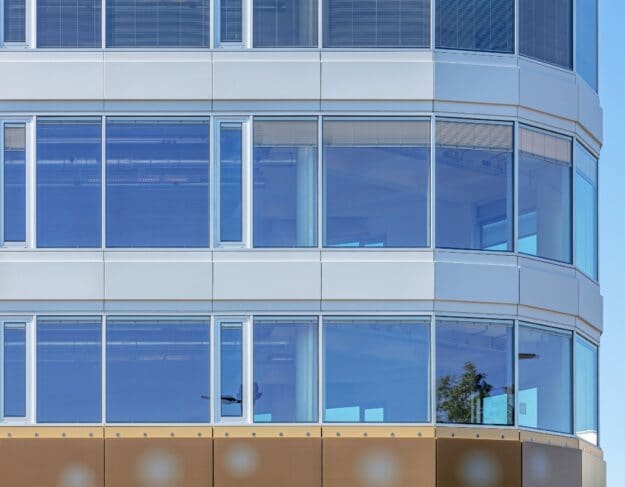 De gevel heeft een innovatief karakter vanwege de duurzame componenten en de slimme sturing die geïntegreerd wordt in de vliesgevel.