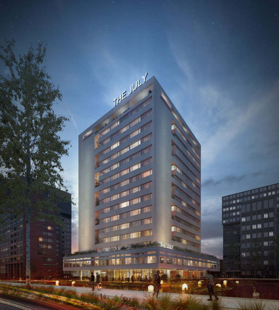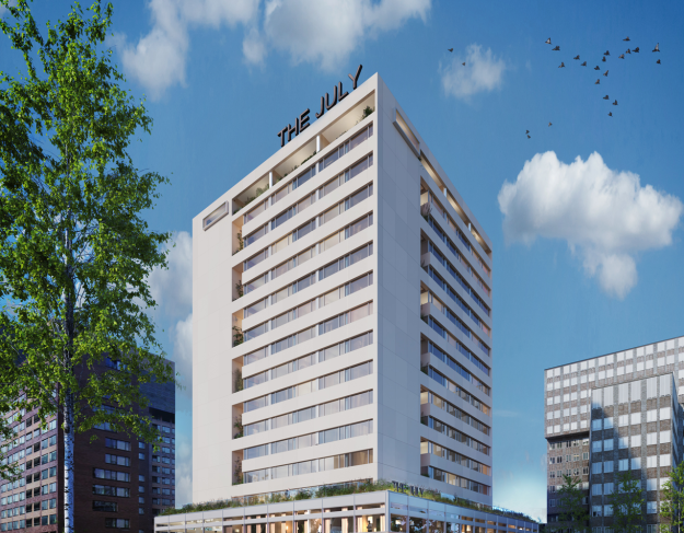 The July zet zijn internationale expansie voort met de transformatie van het voormalige Holiday Inn Amsterdam Zuid tot een full-service appartementenhotel. Het gebouw wordt herontwikkeld met respect voor het modernistische ontwerp, waarbij historische kwaliteiten worden gecombineerd met hedendaags comfort. De transformatie voorziet in ruime appartementen, co-workingruimtes, wellnessfaciliteiten en diverse hospitality-voorzieningen. Duurzaamheid staat centraal, met als doel een BREEAM-certificering en een CO₂-neutrale exploitatie.